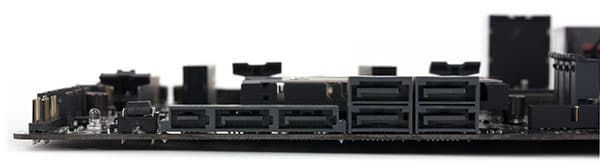 Для подключения накопителей или оптических приводов на плате предусмотрено шесть портов SATA 6 Гбит/с, которые реализованы на базе интегрированного в чипсет контроллера. Из 6 портов SATA 6 Гбит/с два входят в состав разъема SATA Express (естественно, эти два порта могут использоваться не только в составе разъема SATA Express, но и отдельно). Как обычно, все 6 портов SATA 6 Гбит/с поддерживают возможность создания RAID-массивов уровней 0, 1, 5, 10.