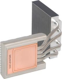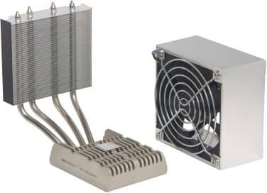 В качестве процессорного кулера в Shuttle ST20G5 используется традиционная для всех barebone-комплектов компании система ICE, но новой модификации, которую мы уже наблюдали в корпусе G5. Принцип ее функционирования стандартный: радиатор с впрессованной в днище медной пластиной снимает тепло с процессора и по тепловым трубкам передает его верхнему радиатору, который крепится у решетки на задней панели корпуса. К верхнему радиатору крепится мощный вентилятор, который одновременно вытягивает горячий воздух из корпуса и продувает, охлаждая, пластинчатые ребра этого радиатора. Визуально заметным улучшением нового поколения ICE является увеличенный до 92 мм диаметр вентилятора (Shuttle DA09225R12U). В результате уровень шума/производительность этого кулера заметно улучшились.