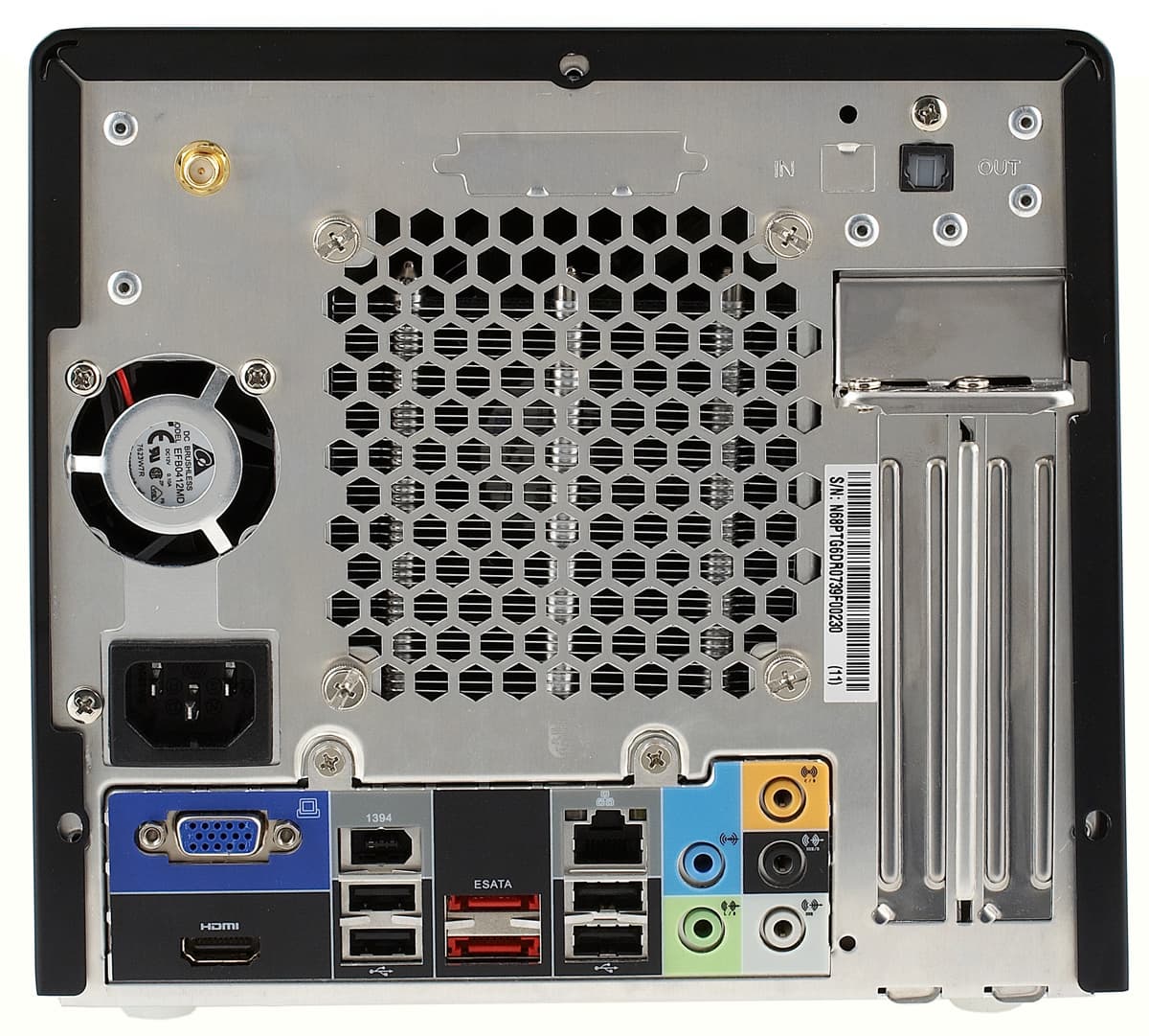 - Разъемы на задней панели: 5 Audio, оптический S/PDIF-Out, 1 HDMI, 1 VGA, 2 eSATA, 1 FireWire, 4 USB (2.0), 1 LAN