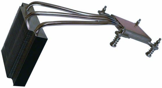 Процессорный кулер несет отчетливые следы экономии, медными сделаны лишь тепловые трубки и основание теплообменника, радиатор — алюминиевый из очень тонких пластин, соответственно, вес невелик.