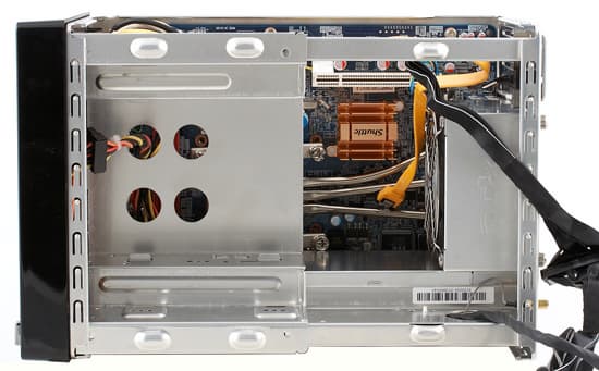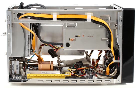 Система охлаждения демонстрирует достаточный запас теплоотводящей способности в режиме простоя и при декодировании HD-видео, обороты главного вентилятора поддерживались на уровне 900-926 об/мин, и в целом шум от компьютера оставался едва различимым. При максимальной нагрузке обороты возрастали до 2600-2800 об/мин, которые уже весьма ощутимы на слух, хоть и далеки от максимальных. Формально причин для такого подъема скорости вращения кулера нет, и пользователь может попробовать выставить в BIOS режим Low или Ultra Low, поскольку компоненты допускают более высокий нагрев. С другой стороны, создается впечатление, что упрощение конструкции процессорного кулера по сравнению с корпусами серии G5 не только внешнее, тепло, действительно, снимается менее эффективно, и для достижения той же температуры кулеру приходится дополнительно поднимать обороты.