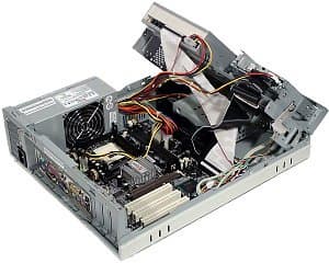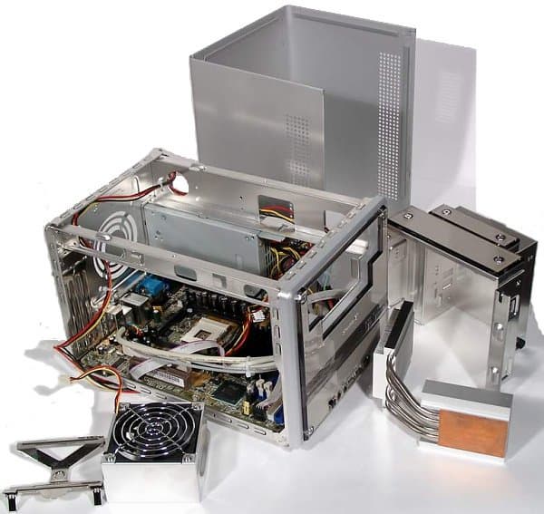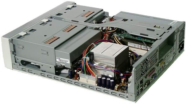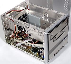 В сборке и разборке система исключительно проста, благодаря легко снимающемуся и удобному для подключения кабелей блоку накопителей. Два слота (один PCI и один AGP) позволяют устанавливать полноразмерные карты расширения — вот она, прелесть достаточно высокого «кубика» по сравнению со «slim desktop» с классическим способом установки карт!