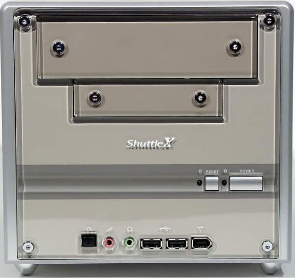 Как давно вы не летали в космос? Как: совсем не летали? Ну, тогда хоть barebone от Shuttle купите, чтобы не так обидно было :). XPC SB51G свою торговую марку «Spacewalker» оправдывает на 100% — это действительно «нечто космическое». Корпус, в общем-то, совершенно не напоминает компьютер, по крайней мере, для тех, кто не встречался с barebone от Shuttle ранее — «квадратное лицо», передняя панель с использованием прозрачного пластика, «подчеркнутые» головки металлических винтов, даже заглушки под FDD и CD-ROM выделены настолько явно, что перестают быть просто заглушками, становясь частью оформления корпуса. Но вот, кстати, в связи с заглушками-то и пробежала небольшая черная кошечка…