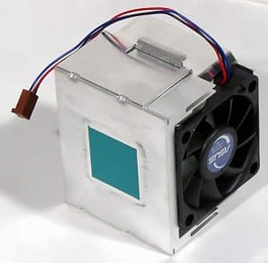 Кстати, между прочим, ничего необычного для «опытного x86-хай-эндщика» в нем как раз нет — примерно такими же по конструкции устройствами охлаждения компания SuperMicro комплектует свои серверные платы под Intel Xeon. Забавное совпадение, правда? Довольно медленный и тихий вентилятор продувает радиатор с высокими алюминиевыми ребрами сбоку, унося нагретый воздух к задней панели, где его выдувает наружу специальный маленький вентилятор.
