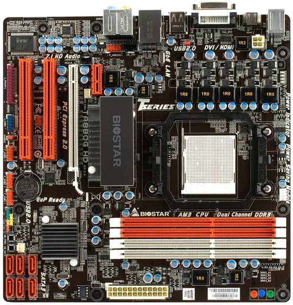 Плата, на первый взгляд, является достаточно простой по оснащению, то есть реализует лишь возможности чипсета. Тем не менее, примитивной ее назвать никак нельзя: мощный по меркам компактных плат стабилизатор напряжения, использование исключительно твердотельных конденсаторов, широкий выбор разгонных настроек. Резюмируя, получаем неплохой выбор в случае если пользователь выбирает из компактных плат не столько с точки зрения экономии, хотя продукция Biostar традиционно недорога, сколько желания собрать надежную систему в небольшом корпусе.