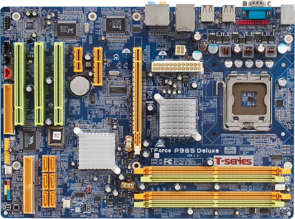 - Процессорный сокет (Socket 775, официальные данные о поддержке процессоров отсутствуют, но должны без проблем заработать все существующие процессоры для этого сокета: Intel Celeron D, Pentium 4, Pentium D, Pentium 4 XE, Pentium XE, а также Core 2 Duo и Core 2 Extreme);