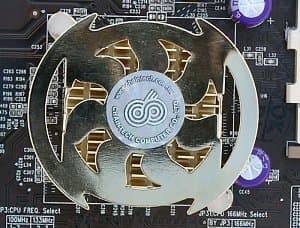 Северный мост чипсета охлаждается с помощью очень эффектно выглядящего кулера.
