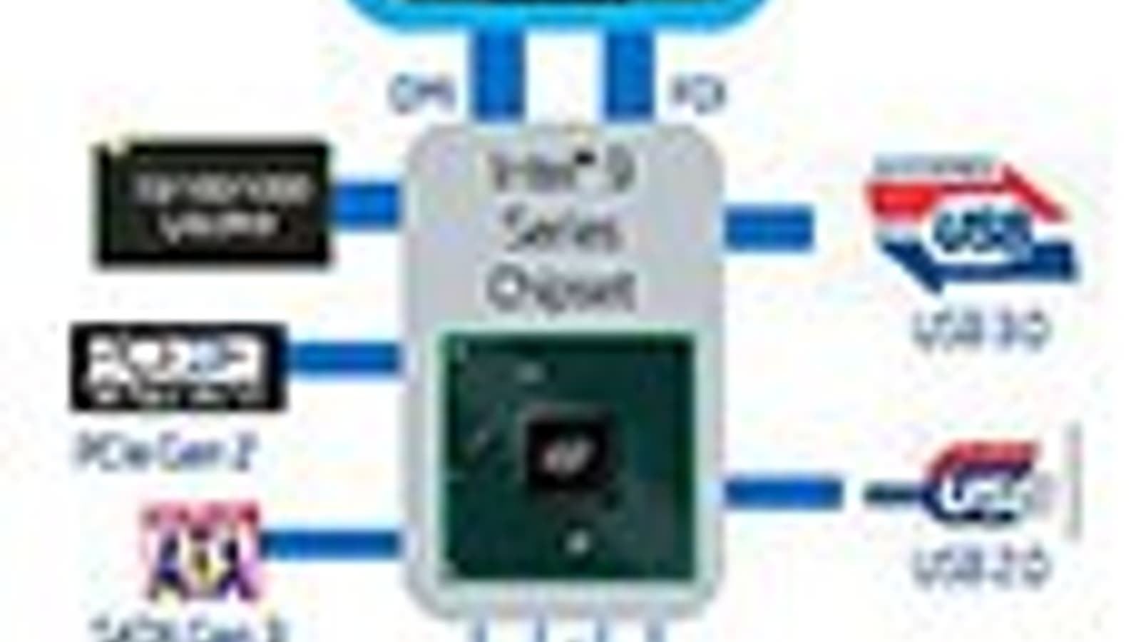 Чипсеты Intel 9-й серии поддерживают до 8 портов PCI Express 2.0 (с пропускной способностью 5,0 Гбит/с). Кроме того, имеется в новых чипсетах и интегрированный SATA-контроллер, который обеспечивает поддержку до шести портов SATA 6 Гбит/с, причем каждый из шести SATA-портов может быть реализован как порт eSATA. Естественно, поддерживается технология Intel RST (Rapid Storage Technology), которая позволяет конфигурировать SATA-контроллер в режиме RAID-контроллера с поддержкой уровней 0, 1, 5 и 10.
