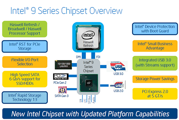 Слухов о новых чипсетах Intel 9-й серии было много. Им приписывали поддержку интерфейса SATA Express, а кроме того, был неясен вопрос совместимости существующих процессоров Haswell с новыми чипсетами. И вот, наконец-то, 11 мая компания Intel официально анонсировала эти новые чипсеты.