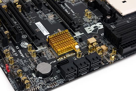 Задняя панель платы воображения не поражает — отметить можно лишь полный набор видеовыходов, который, однако, занял достаточно много места. USB-портов могло бы быть больше, но тут уже в ECS не стали слишком заморачиваться, сочтя, что шести хватит большинству пользователей. В чем мы с компанией согласны. Тем более, что четыре порта на задней панели поддерживают USB 3.0, для чего и понадобился дополнительный контроллер, поскольку еще два таких чипсетных порта с платы можно самостоятельно вывести, например, на лицевую поверхность соответствующего корпуса. Пары же USB 2.0 для подключения низкоскоростной периферии хватит, а кому не хватит, тот выведет наружу и часть таковых внутренних портов в количестве до шести штук. Кстати, хорошо заметно отличие не совсем бюджетных плат ECS от совсем бюджетных: в последних и дополнительных USB 3.0 нет, и технологию EZ Charger поддерживает лишь пара портов, а не четыре (два на задней панели и два внутренних), как в A85F2-A. В топовых платах просто «всего больше», но на то они и топовые. Причем кое в чем подавляющее большинство плат на А85Х может дать фору и более дорогим моделям: этот чипсет поддерживает 8 SATA-портов, что явно избыточно для недорогого компьютера, так что практически все производители как один выводят один из портов на заднюю панель для использования в качестве eSATA. Эх, вот это бы несколькими годами ранее! Сейчас-то поддержка данного интерфейса явно запоздала, поскольку сейчас уже проще купить высокоскоростной накопитель, рассчитанный под USB 3.0.