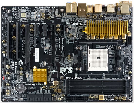 Выше было написано про две модификации — столько их с официальной точки зрения, поскольку формально A85F2-A Deluxe и A85F2-A Golden являются разными платами. Фактически же это ровно одна плата с технической точки зрения, а все отличия заключаются в цвете текстолита, разъемов и слотов, задней панели и тому подобном украшательстве. Т.е. можно в дальнейшем говорить просто об A85F2-A, учитывая то, что работать они будут одинаково. А что одна красивее другой, так это будет видно только до установки платы в корпус.