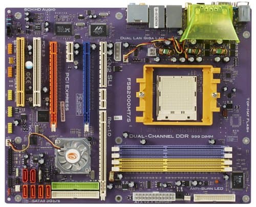 - Чипсет NVIDIA nForce4 SLI X16 (применен северный мост nForce SPP 100 (С51D) и южный мост nForce4 SLI), функционально отличается от nForce4 SLI только полноскоростной работой обоих слотов для графики в режиме SLI