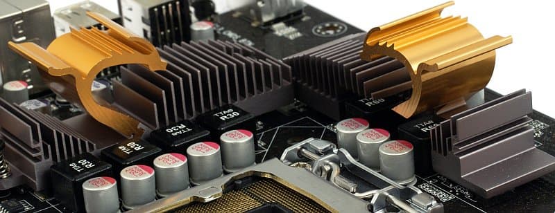 Стабилизатор питания процессора выполнен по скромной схеме 4+2 канала (4 для ядра процессора и 2 для Uncore-логики, включая контроллер памяти), но в цепи питания ядра применено по три полевых транзистора на канал, так что можно особо не беспокоиться ни за ограничение по току при небольшом разгоне, ни за нагрев. Кроме того, для модели какой-никакой, но все же старшей серии используются только полимерные конденсаторы и дроссели с ферритовым сердечником.