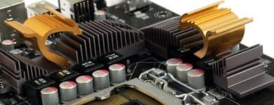 Зато система охлаждения на плате совершенно адекватна и радует взор. Никакой потребности в серьезном охлаждении 5-ваттного чипсета и конвертера питания, с его большим количеством полевых транзисторов, нет, так что для них используются полудекоративные радиаторы, которые имеют весьма скромные габариты и не должны помешать установке длинных карт расширения и громоздких процессорных кулеров. А металлические завитки (символизирующие, очевидно, головы драконов) даже добавляют плате некоторого изящества. Все радиаторы крепятся к текстолиту пластмассовыми защелками, а не нормальными металлическими винтами, и это серьезный недостаток для тех, кто планировал время от времени снимать их. Впрочем, поскольку о серьезном разгоне на ECS P55H-A вряд ли кто-нибудь задумается, есть смысл оставить набортную систему охлаждения в покое и забыть про нее. При работе, как и следовало ожидать, нагрев радиаторов едва заметен, так что беспокоиться не о чем.