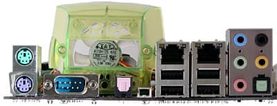 Такое количество аудиоразъемов на задней панели, наверное, пока еще выглядит непривычным, но с распространением плат, поддерживающих High Definition Audio, этот вид примелькается.