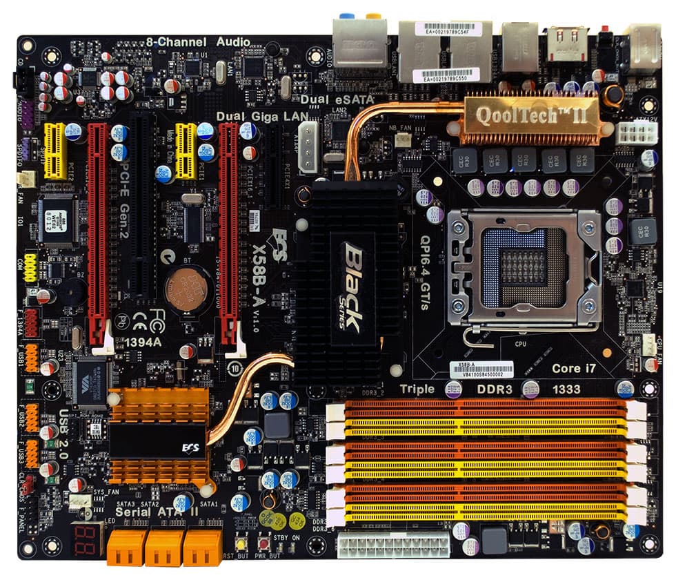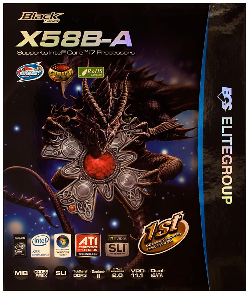 Первая плата на базе чипсета Intel X58 для платформы Socket 1366 (Core i7), которая была нами рассмотрена — ASUS P6T Deluxe, — имела все традиционные особенности плат ASUS серии Deluxe: богатую комплектацию, неординарную систему охлаждения, 16-канальный преобразователь напряжения и все прочие «вкусности». Рассматриваемый продукт компании ECS несколько контрастирует с описанной выше моделью - это качественная, но относительно просто сделанная плата на базе топового для данного времени чипсета Intel, предназначенного для новой процессорной платформы. По сути, идеальным покупателем ECS X58B-A является пользователь, который хочет собрать компьютер на базе одного из новых процессоров серии Core i7… и других специфических пожеланий он не имеет: ему просто нужна системная плата, которая работает с процессорами данной серии. Желательно, не по цене болида Формулы-1. X58B-A даст ему все, что нужно: вожделенный разъем LGA1366 и весь набор функций, обеспечиваемых чипсетом Intel X58. Для человека, который подбирает плату под конкретный нужный ему процессор и не желает за эту возможность переплачивать, — более чем достаточно.