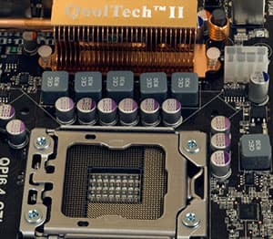 Дизайн и оснащение продукта вполне соответствуют той основной цели, которую мы уже озвучили выше: это плата, в которой будет работать процессор для разъема LGA1366. Основная цель, соответственно, — чтобы работал. Шестиканальный преобразователь в цепи питания процессора (в преобразователях напряжения для северного моста и памяти и вовсе ограничились одним каналом) вряд ли поразит воображение оверклокеров (на современных платах не редкость конвертеры с вдвое большим числом каналов). Однако по факту он вполне справляется со своими функциями, что подтверждают результаты наших тестов — система на базе ECS X58B-A в штатных режимах у нас функционировала стабильно и без каких-либо нареканий. Полимерные конденсаторы и катушки закрытой конструкции с ферритовыми сердечниками в данном контексте смотрятся, скорее, не как дополнительный бонус, а просто как желание компании продемонстрировать ответственный подход к разработке продукта.