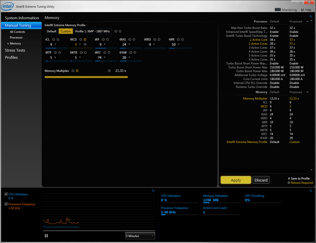 Впрочем, компания сделала ход конем, перейдя к использованию утилиты Intel eXtreme Tuning Utility, которую мы раньше видели только на платах собственно Intel. А вот XTU уже — первоклассный инструмент, причем даже не для разгона как такового: кто лучше компании Intel разбирается в тонкостях настройки режимов Turbo Boost новых процессоров и пр.? Надеемся, вы оцените богатство возможностей XTU по прилагаемым скриншотам.
