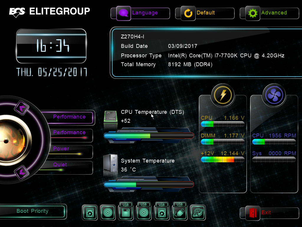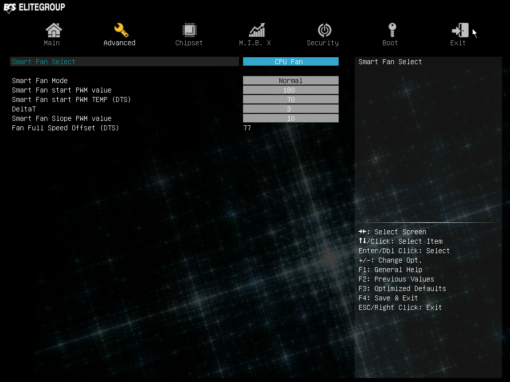 Компания ECS реализовала в своих платах очень красивый интерфейс UEFI BIOS. К сожалению, нигде не написано, как можно сделать снимок экрана в UEFI BIOS плат компании, и поначалу мы даже думали, что эта опция вообще не предусмотрена, но, тем не менее, решили попробовать, нажимая разные функциональные клавиши. Как выяснилось, снимок экрана делает клавиша F8, причем никакого подтверждения о сохранении не возникает. Одним словом, недоработали. Кроме того, есть еще один момент: у вас не получится сделать снимок экрана с открытым окошком для выбора возможных значений.