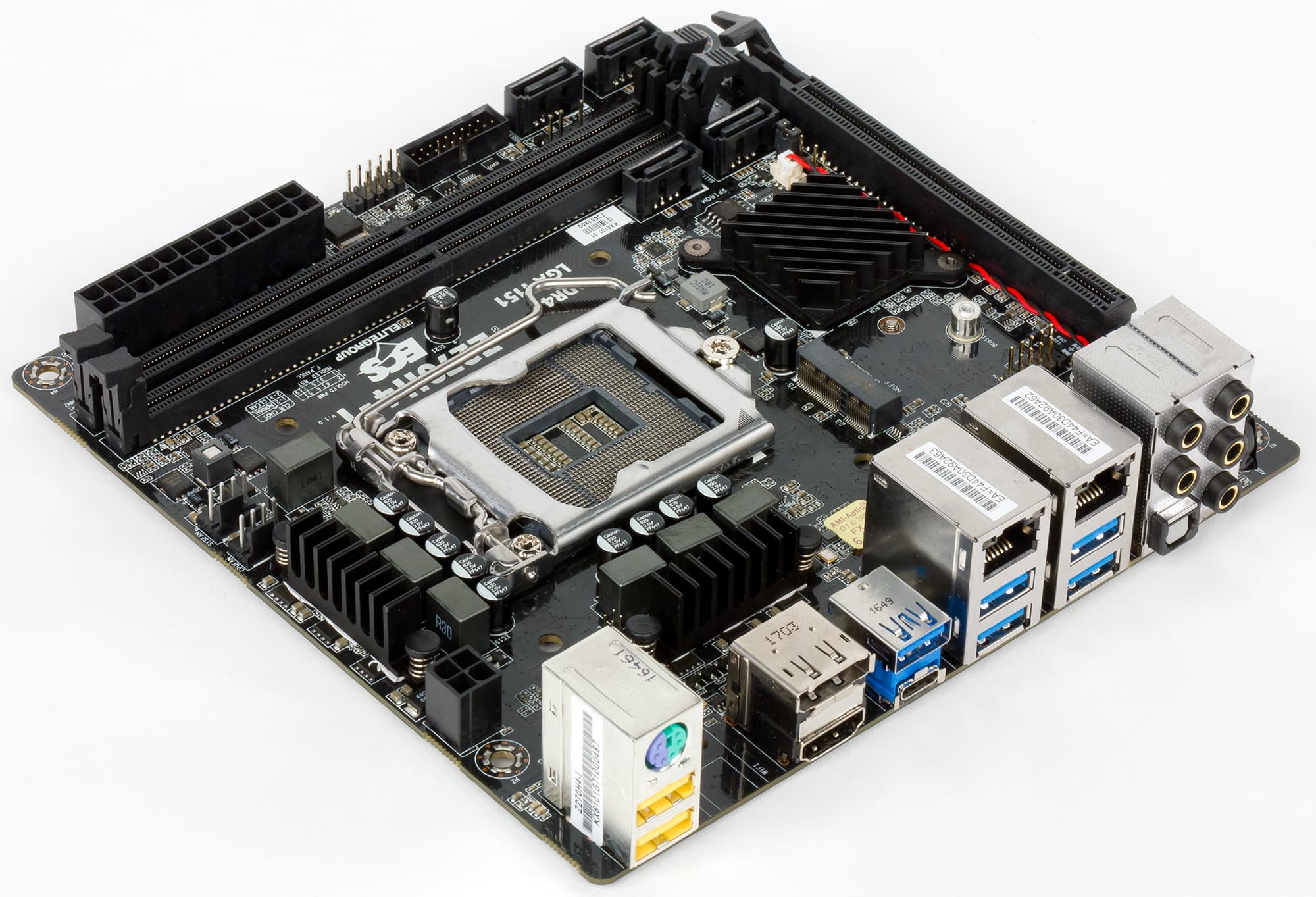 Плата ECS Z270H4-I выполнена в форм-факторе Mini-ITX (170×170 мм), для ее монтажа в корпус предусмотрены стандартные четыре отверстия.