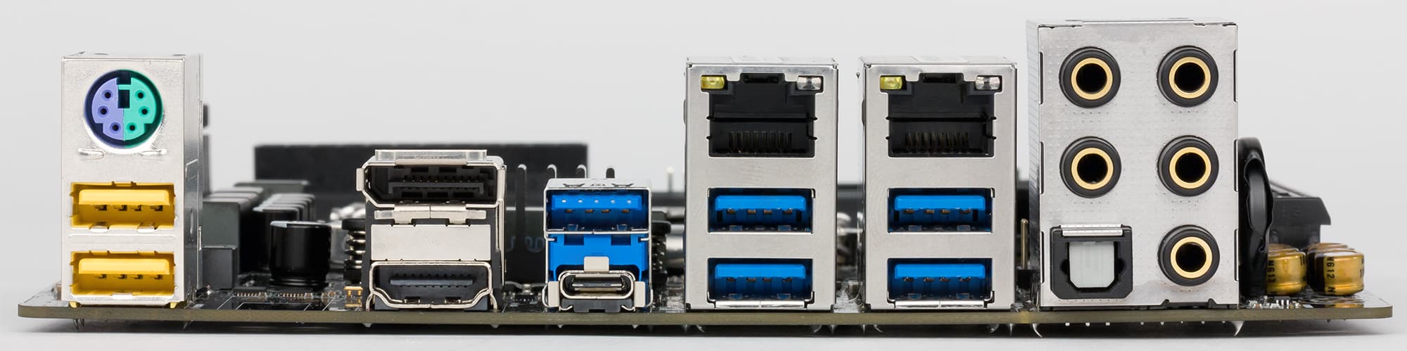 Шесть портов USB 3.0 вынесены на заднюю панель платы, причем пять портов имеют разъем Type-A, а один — Type-C.