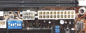 По непонятным причинам FIC отказался от монтажа привычного радиатора на северном мосту чипсета. Зато на плате присутствует очень редкий дополнительный 6-контактный разъем для подключения блока питания, посредством которого может осуществляться его мониторинг и управление, если конечно вы сможете найти блок питания, поддерживающий эту функцию. Плата поставляется с предустановленным универсальным складным механизмом для крепления процессора.