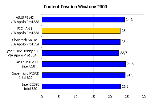 Как видно из результатов тестов, FIC KA-11 показывает вполне нормальную для плат на VIA Apollo Pro133A производительность.