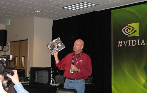 Но сможет ли Foxconn на равных с традиционными грандами выступить в классе моделей на дорогих чипсетах? Впрочем, и среди розничных потребителей есть весьма заметная категория, не столько интересующаяся опциями, сколько желающая получить стабильно работающий продукт без лишних украшательств, с полноценно реализованными функциями, заложенными в чипсет. И, как минимум, на их внимание Foxconn может вполне рассчитывать. А крупных сборщиков, наверняка, положительно заинтересует то обстоятельство, что рекламой модели Foxconn на чипсете nForce 590 SLI занимается сама NVIDIA. Платы Foxconn неизменно фигурируют на презентациях чипсетов NVIDIA с момента представления 500-серии на весеннем CeBIT вплоть до летнего nForce Summer Camp (за снимки с которого отдельное спасибо Андрею Воробьеву).