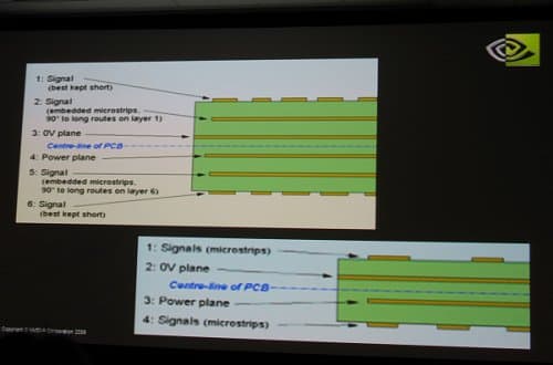 Презентация упоминает об использовании шестислойного дизайна вместо четырехслойного, что для дорогих плат — вполне оправданное решение, учитывая необходимость разводки такого количества периферийных линий.