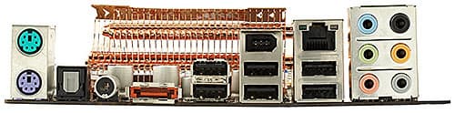 Слотов PCI много (три — при теоретическом максимуме в 4 PCI-устройства у чипсета — это практический максимум), и они весьма удобно расположены: даже если видеокарта имеет двойную ширину, она не закроет ни один из них (закрытым окажется слот PCIEx1, но как раз об этом вряд ли кто пожалеет). Кстати, первое существенное отличие MARS от P35A-S — два слота PCIEx1 вместо одного. А вот количество разъемов под дополнительные планки USB на MARS сократилось, так как 6 портов USB выведены на заднюю панель (у P35A-S — четыре). Сосредоточение большого количества разъемов в нижней части платы, конечно, приведет к некоторой путанице в кабельном хозяйстве (особенно если задействовать все), однако избежать этой ситуации все равно не удалось бы; она объективно обусловлена большим количеством разъемов. Отдельной благодарности заслуживают наконец-таки начисто удаленные с задней панели разъемы COM-порта и LPT. Давно уже пора выносить этих динозавров на дополнительные планки — все равно 99% пользователей про них никогда не вспомнят и устанавливать не будут (кстати, у «прародительницы» P35A-S на задней панели как раз имеются и COM-, и LPT-порт).