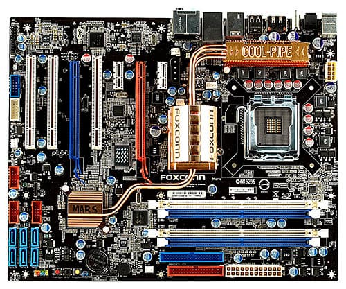 Плата со звучным названием MARS пока что является единственным продуктом в серии Quantum Force, которую Foxconn анонсировал как ориентированную на геймеров и оверклокеров. Сама по себе идея выпуска оверклокерской платы лежит на поверхности для любого производителя, который еще не успел этим заняться :), однако бывают, как говорится, нюансы. Некоторые производители могут себе позволить разработку оверклокерского продукта с нуля (ну или почти с нуля), некоторые предпочитают доработать одну из уже имеющихся в ассортименте плат, ну а кое-кто, ничтоже сумняшеся, считает, что достаточно открыть в BIOS Setup функции управления питанием процессора и памяти — и плата сразу же станет оверклокерской. В первую очередь нас, конечно же, заинтересовал вопрос, по какому пути пошла компания Foxconn. После непродолжительных поисков на сайте производителя выяснилось, что по второму: по совокупности признаков, мы практически на 100% уверены, что MARS — это переделанная и доработанная системная плата Foxconn P35A-S.