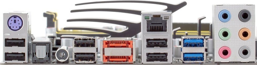 А вот набор разъемов задней панели скудным назвать нельзя. Излишеств нет, но возможности отнюдь не бюджетные: есть пара USB 3.0, 6 портов USB 2.0, 2 eSATA, два цифровых выхода звука. Для любителей периферии с разъемом PS/2 тоже оставлен один порт. В общем, совсем не помешала бы еще пара портов USB, хотя бы 2.0.