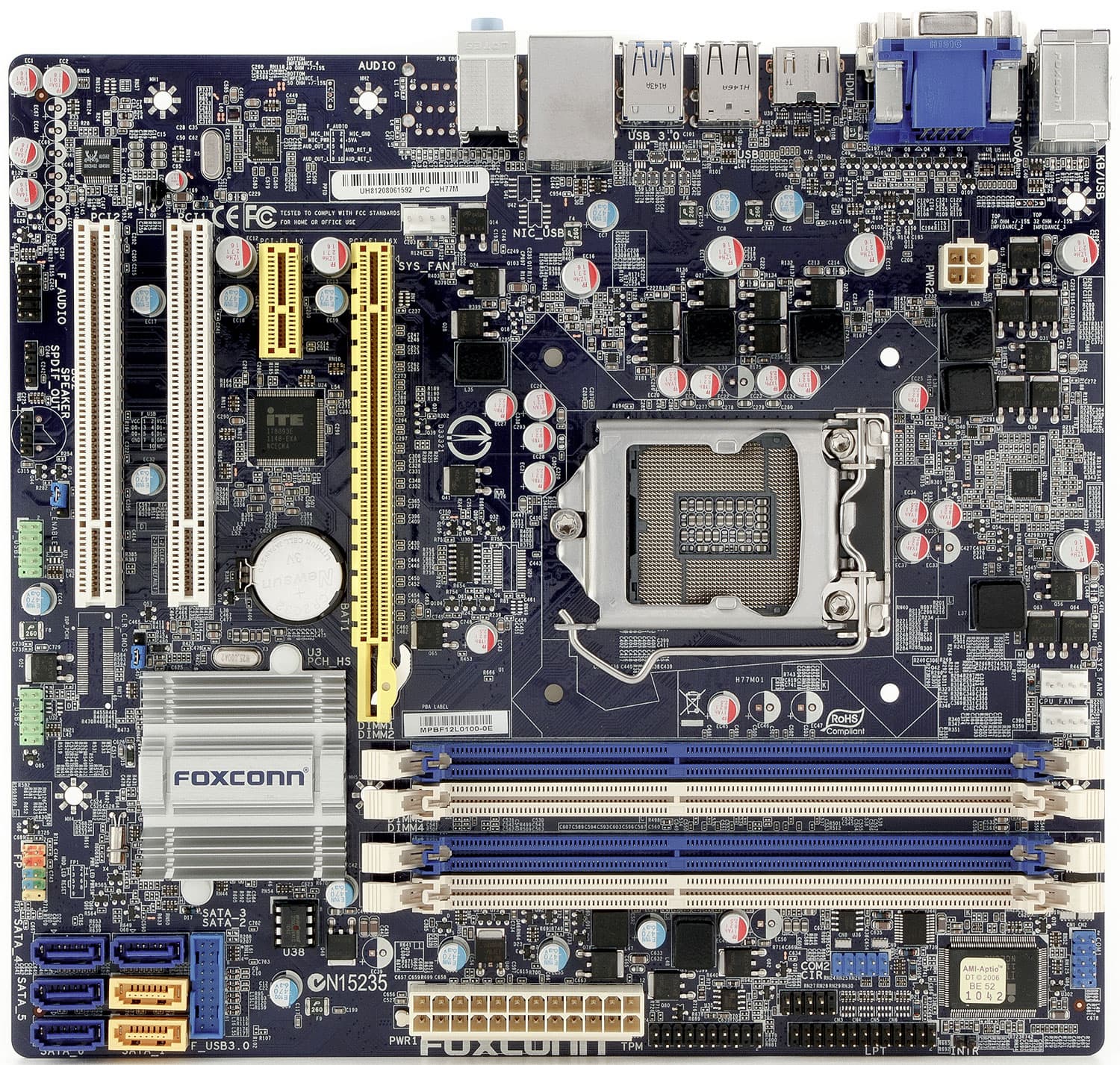 Одну системную плату на чипсете H77 мы уже рассматривали, однако Intel DH77EB сложно назвать типичным представителем данного класса. Все-таки, скорее, это некий концептуальный эталон верхнего сегмента — с поддержкой mSATA и DisplayPort, но без некоторых устаревших интерфейсов (пусть и с последовательными ретро-портами). Сегодня мы подойдем к сегменту microATX-плат на Н77 с другой стороны — снизу. Фактически, Foxconn H77M— это плата для тех, кому уже кажется недостаточным чипсет В75, но кто хочет приобрести недорогую плату с поддержкой PCI.