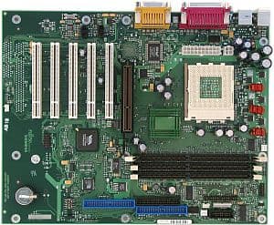 Краткие характеристики платы: разъемы памяти — 3 DDR SDRAM; слоты расширения — AGP/ 5 PCI; порты ввода/вывода — 2 COM/ LPT/ 2 PS/2/ 6 USB 1.1; размеры — 305х245 мм.