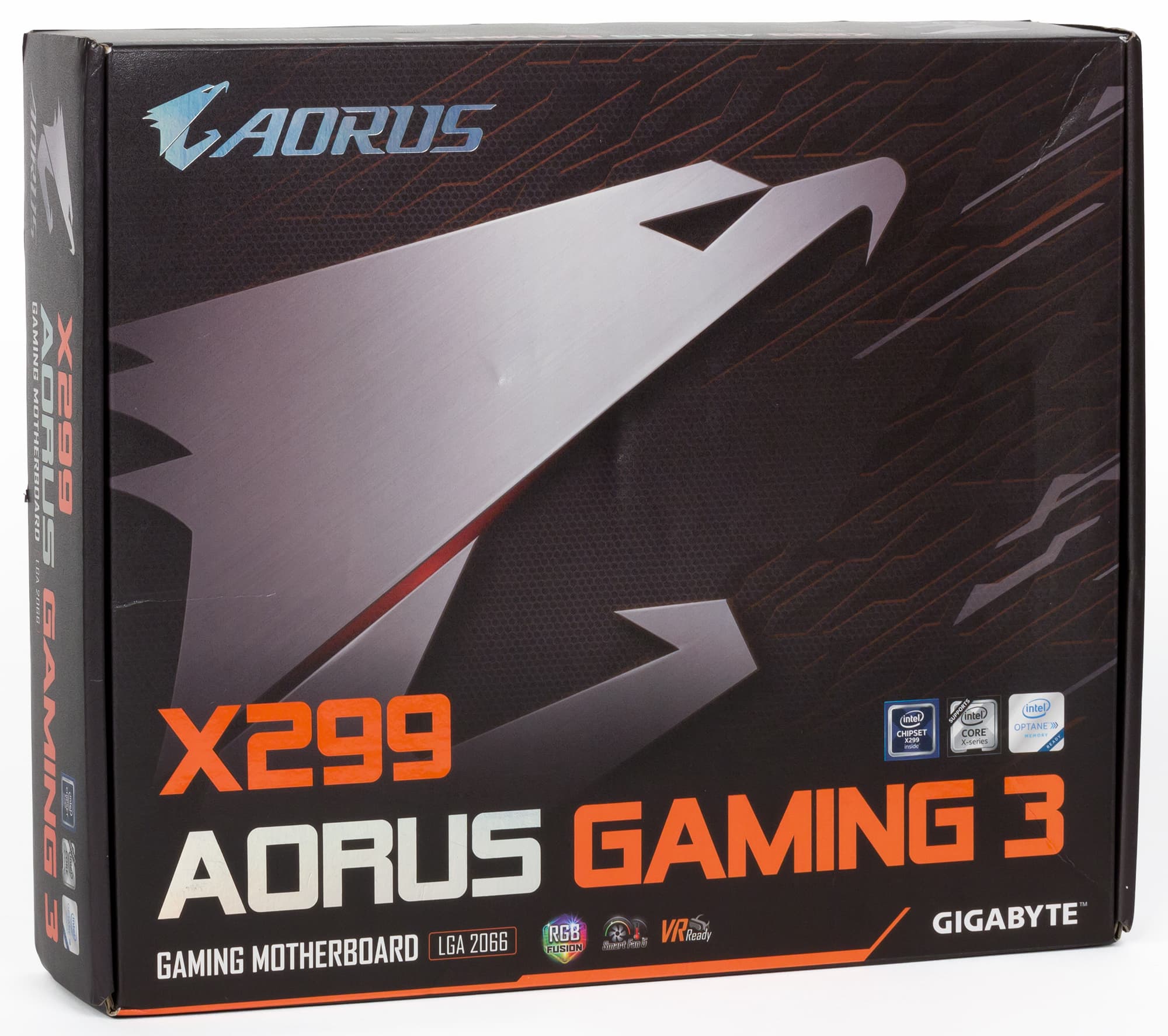 Плата X299 Aorus Gaming 3 поставляется в довольно большой коробке (правда, без ручки).