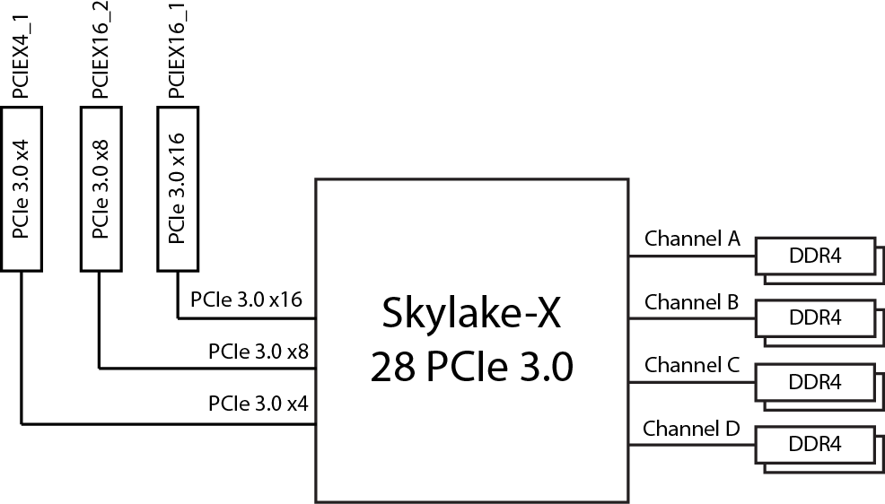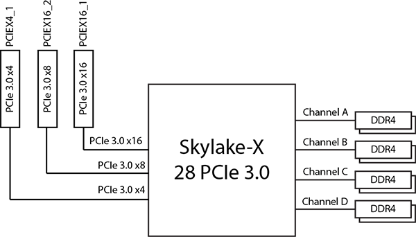| Поддерживаемые процессоры | Intel Core-X (Skylake-X, Kaby Lake-X) |