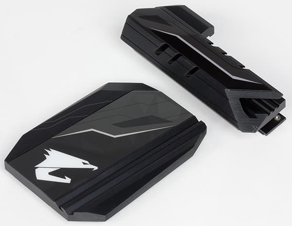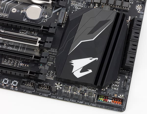 Система охлаждения платы X299 Aorus Gaming 3 состоит из двух радиаторов. Один радиатор предназначен для отвода тепла от элементов регулятора напряжения питания процессора. Еще один радиатор предназначен для охлаждения чипсета.