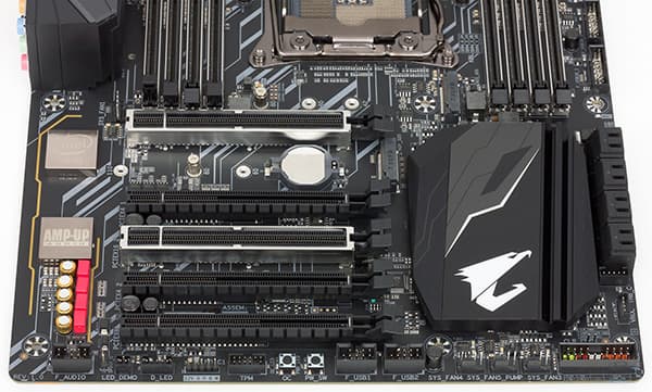 Для установки видеокарт, плат расширения и накопителей на материнской плате X299 Aorus Gaming 3 имеется пять слотов с форм-фактором PCI Express x16 и два разъема M.2.