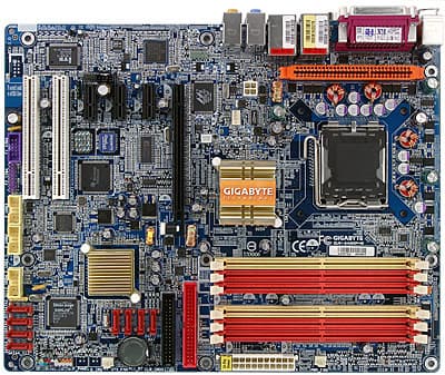 Разводка платы привычна — не совсем удобно расположен ряд разъемов вдоль левого края платы, разъемы FDD и PATA — позади разъема для видеокарты, а аудиоразъем — перед слотами PCI-E 1x. Доступ к перемычке не затруднен при установке платы в корпус, ее краткое описание приведено на текстолите. В четырехканальном импульсном стабилизаторе напряжения питания процессора применены 2 конденсатора по 1500 мкФ, 4 по 1000 мкФ и 9 по 560 мкФ . На плате находятся стабилизаторы напряжения шины PCI-E x16 (4x1000 мкФ) и памяти (6x1000 мкФ).