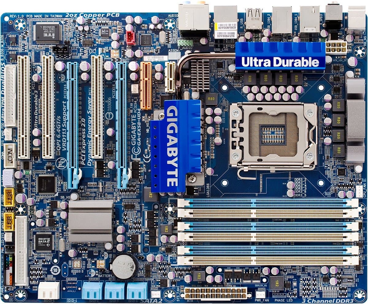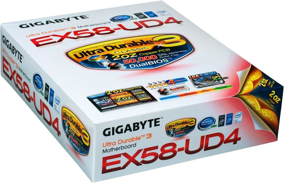 Компания Gigabyte выбрала для предоставления нам на тесты не топовую модель на базе Intel X58, а одну из самых дешевых в линейке на этом чипсете: конечно, такие платы приносят производителям меньше денег с каждой продажи, но зато есть основания надеяться, что эти продажи вообще будут. Из того, что название модели имеет суффикс UD4 (UD3 и выше), можно сразу же сделать вывод, что эта плата реализует комплект технологий Ultra Durable 3. Давайте посмотрим, чем же привлекательны этот комплект и его конкретная реализация.
