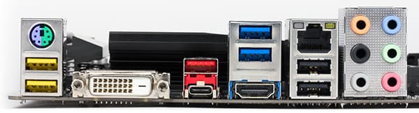 | Разъемы на задней панели | 1 × HDMI 1.4 1 × DVI-D 1 × USB 3.1 (Type-A) 1 × USB 3.1 (Type-C) 4 × USB 3.0 2 × USB 2.0 1 × RJ-45 6 аудиоразъемов типа миниджек |