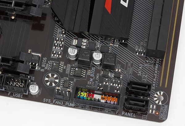 Помимо этого, для создания эффективной системы теплоотвода на плате предусмотрено пять четырехконтактных разъемов для подключения вентиляторов. Два разъема предназначены для кулера процессора, а еще три — для дополнительных корпусных вентиляторов. Дополнительный разъем для кулера процессора может использоваться для подключения помпы водяного охлаждения.