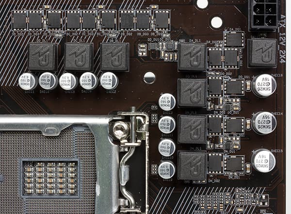 Регулятор напряжения питания процессора на плате является 7-канальным и управляется 7-фазным (4+3) PWM-контроллером Intersil ISL95866. В контроллер встроено три MOSFET-драйвера, а еще четыре драйвера находятся на плате.