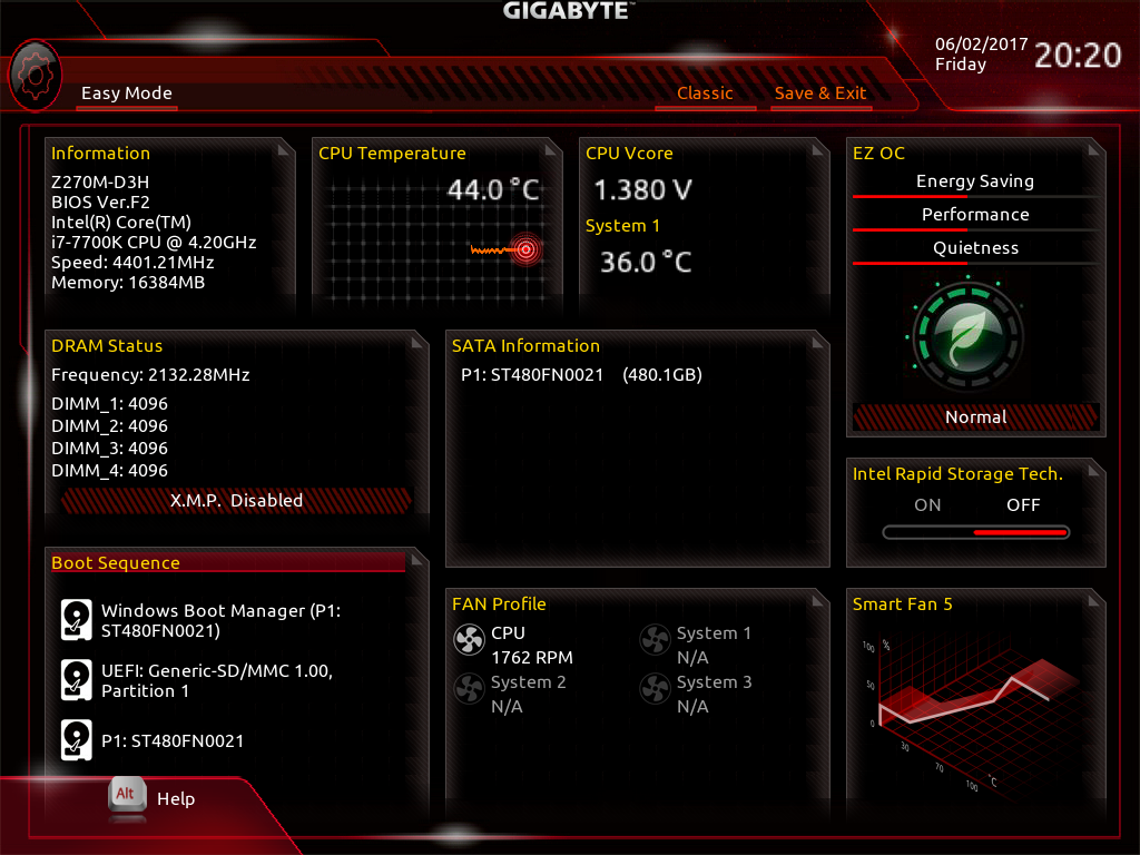 Есть два режима отображения: Easy Mode и Classic. В режиме Easy Mode отображается основная информация о настройках платы.