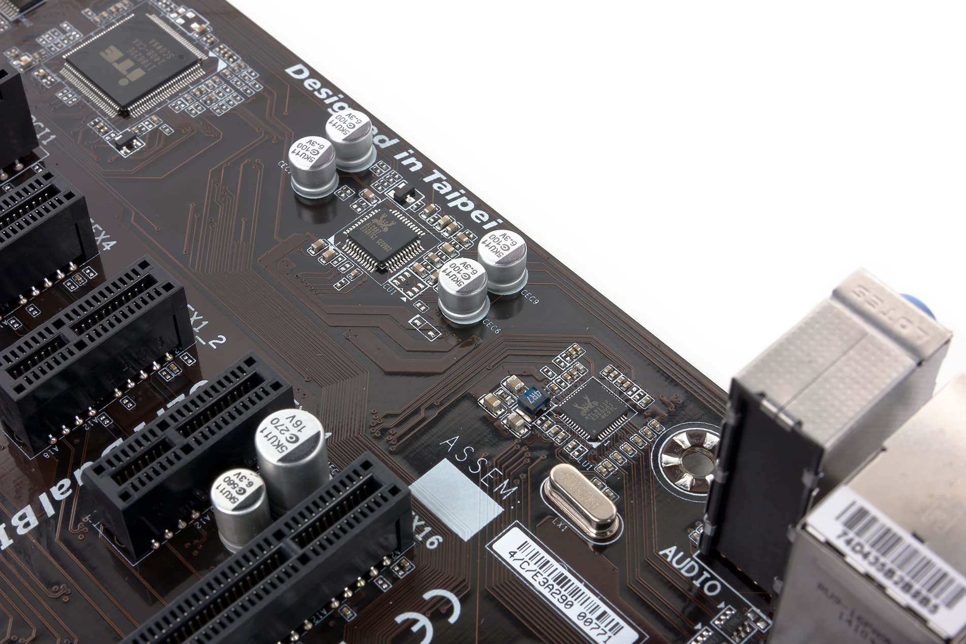 Аудиоподсистема материнской платы Gigabyte Z97P-D3 довольно простая. Тут нет отдельной зоны, изолированной на уровне PCB, для элементов аудиотракта, нет отдельного операционного усилителя, да и компоненты самого аудиотракта (обвязка HDA-аудиокодека) самые простые и дешевые.