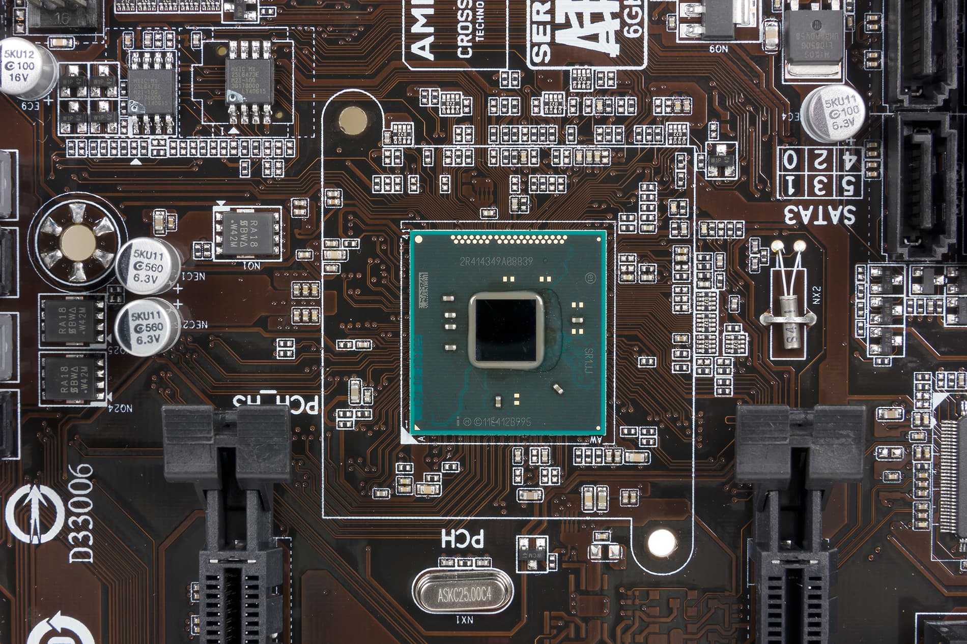 Для подключения накопителей или оптических приводов на плате предусмотрено шесть портов SATA 6 Гбит/с, которые реализованы на базе интегрированного в чипсет контроллера. Все шесть портов SATA 6 Гбит/с поддерживают возможность создания RAID-массивов уровней 0, 1, 5, 10.