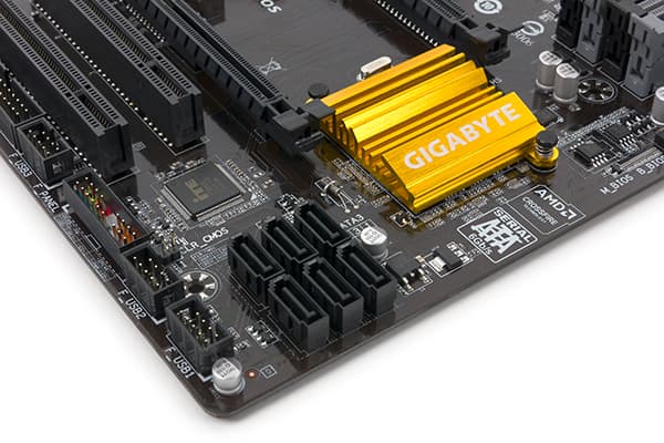 Для охлаждения MOSFET-транзисторов регулятора напряжения питания процессора на плате имеется всего один миниатюрный радиатор. Также имеется отдельный радиатор, установленный на чипсете.