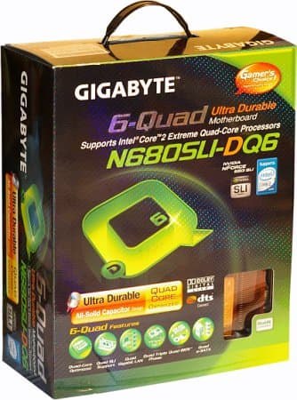 Осенью прошлого года в нашей лаборатории побывала интересная плата Gigabyte 965P-DQ6, положившая начало новой линейке 6-Quad (шесть «учетверенных» технологий). Конечно же, чипсет nForce 680i SLI, позиционируемый NVIDIA в качестве топового на рынке в целом (а не только в своей линейке) представлялся идеальным вариантом для выпуска на его основе следующей модели в серии, ради чего инженеры Gigabyte довольно продолжительное время потрудились над разработкой собственного дизайна платы, а не воспользовались референсным. Так что же в этот раз «учетверили» инженеры Gigabyte? Новинки есть.