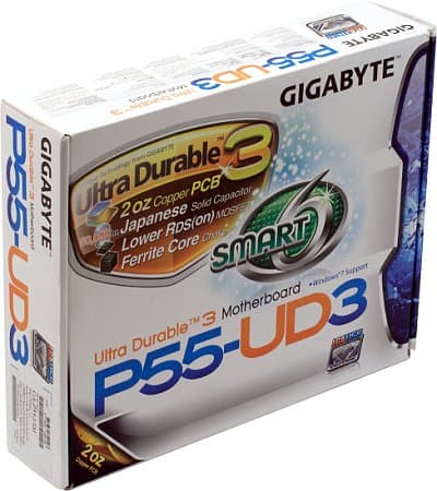 Топовую модель в новой линейке Gigabyte (P55-UD6) мы уже рассмотрели, сегодня пришел черед одной из младших плат. Компания, как обычно, выпустила очень широкую линейку, различия между моделями в которой не очевидны ни на первый, ни на второй взгляд. В общем можно ориентироваться на суффикс названия, исходя из того, что плата с меньшей функциональностью, упрощенным дизайном и более скромной комплектацией имеет меньший числовой суффикс, ну а последняя буква означает еще более тонкие различия. В нашем случае рассматривается модель P55-UD3 «просто», у которой есть старшая сестра P55-UD3R (с более сложной системой питания процессора, портами eSATA на задней панели и лишним (четвертым!) слотом PCI вместо PCIEx1), а также еще «чуть более старшая» P55-UD3P (отличающаяся от P55-UD3R интегрированным модулем TPM). С другой стороны к P55-UD3 примыкают младшие модели P55-UD3L и P55-US3L, имеющие зауженную печатную плату, тоже 4 слота PCI и весьма своеобразный набор разъемов задней панели (достаточно сказать, что там распаяны COM- и LPT-порт). Семейство P55-UD3 является на текущий момент младшим среди полноразмерных плат Gigabyte на чипсете P55, проще и дешевле только одна microATX-модель.