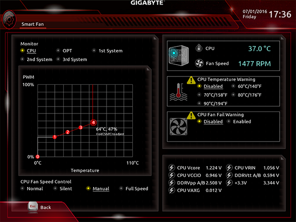 Еще одна очень полезная возможность, реализованная в UEFI BIOS платы — настройка скоростных режимов всех вентиляторов.